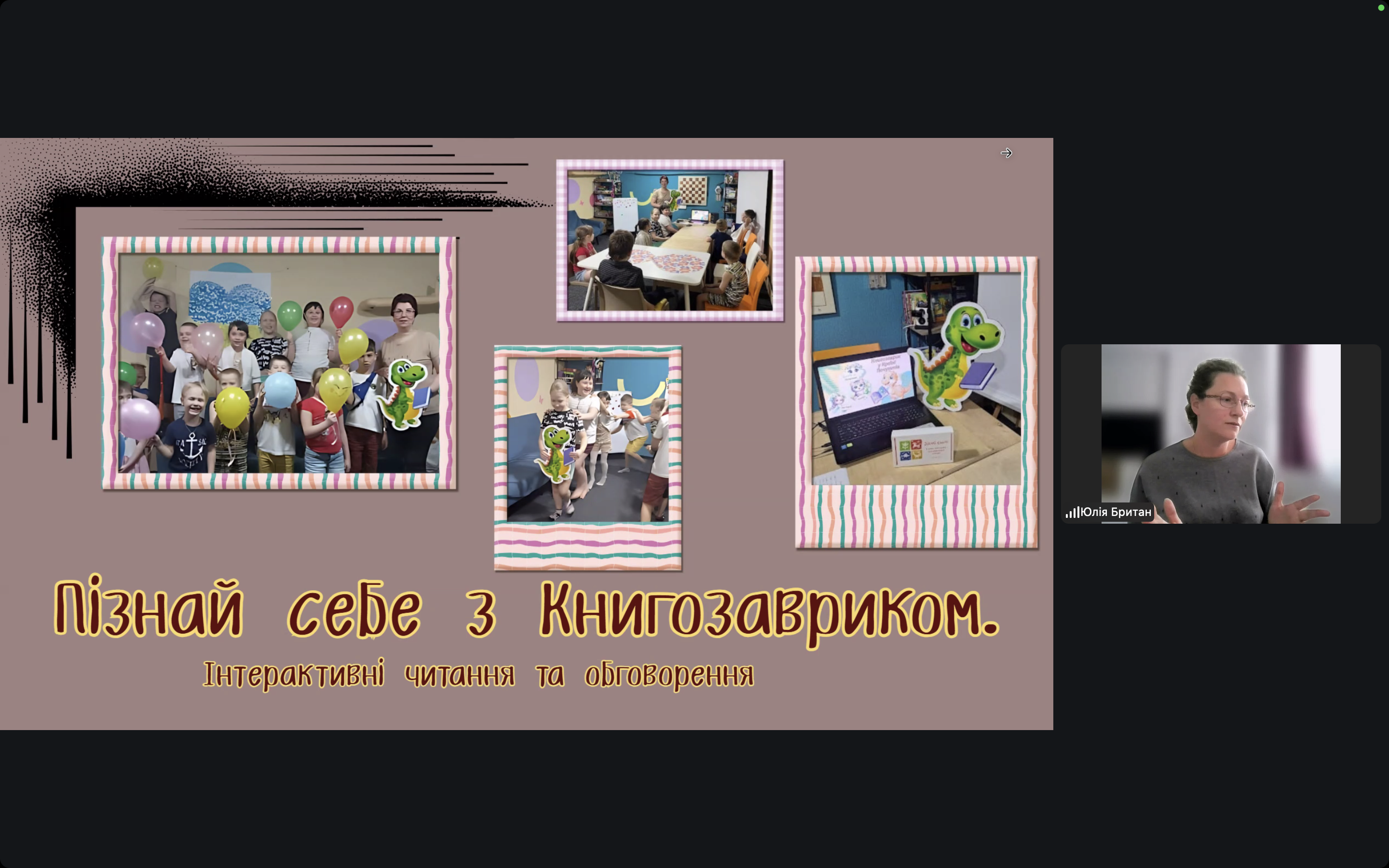 Продовжила зустріч Юлія Валеріївна Британ, представивши збірку-комікс «Магічний скарб емоцій: шлях до власних відчуттів і знань про них» та цікавий проєкт «З книжками контактуй – свій настрій рятуй!», спрямований на розвиток емоційного інтелекту й стресостійкості дітей засобами коміксів і цифрових форматів. Також вона презентувала нову серію інтерактивних коміксів «Познайомтеся з книголюбами», що складається з 12 випусків і доступна на електронній платформі бібліотеки. У межах майстерки Юлія Валеріївна продемонструвала можливості використання інструментів штучного інтелекту для створення коміксів, відео та пісень для дітей, пояснивши, як працювати з шаблонами, редагувати тексти, додавати візуальні ефекти та інтерактивні елементи.