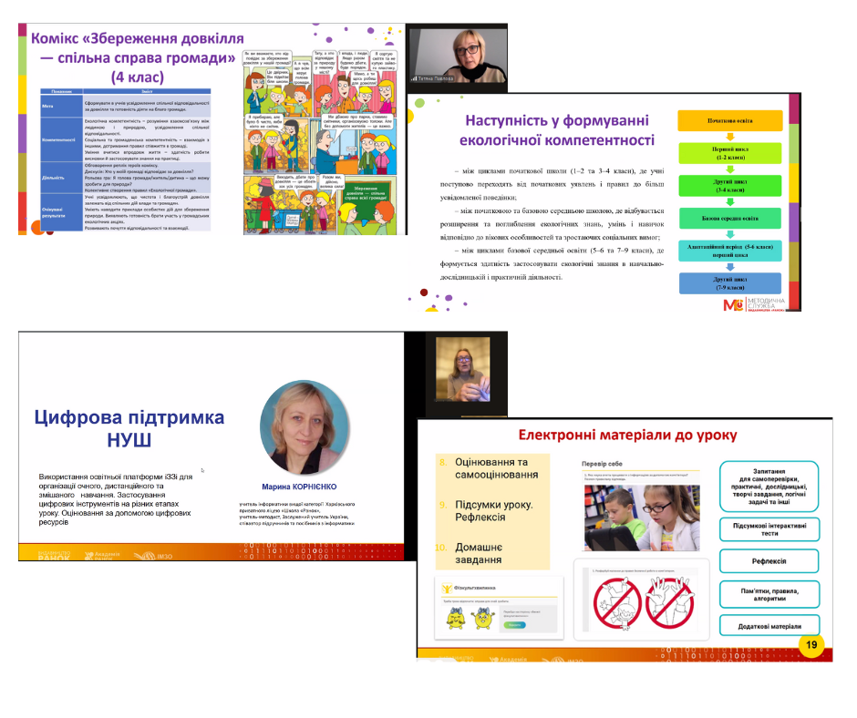 Відповідно до плану роботи КВНЗ «Херсонська академія неперервної освіти» 21 жовтня 2025 року в онлайн режимі відбувся авторський науково-практичний семінар для вчителів початкових класів за участі Марини Михайлівни Корнієнко, Заслуженої вчительки України, учительки-методистки, спеціалістки вищої кваліфікаційної категорії, учительки інформатики Харківського приватного ліцею, співавторки підручників та посібників з інформатики (тема виступу: «Цифрова підтримка НУШ»); Тетяни Сергіївни Павлової, наукової співробітниці відділу початкової освіти ім. О.Я. Савченко Інституту педагогіки НАПН України, учительки початкових класів, співавторки НМК з інтегрованого курсу «Я досліджую світ» для 1-4 класів (тема виступу: «Роль наступності у формуванні екологічної компетентності учнів початкових класів на уроках інтегрованого курсу «Я досліджую світ»).